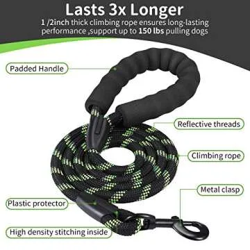 Show more Introducing the Hi Kiss 5-Foot Dog Leash, a remarkable blend of comfort, durability, and style, tailored for every dog owner out there. Designed with the utmost attention to detail, this leash is crafted from high-quality double-layer nylon, ensuring it stands the test of time even with the most energetic pooches. The standout feature that sets this leash apart is its well-padded handle, which provides an exceptionally comfortable grip. No more sore hands or uncomfortable pulls!