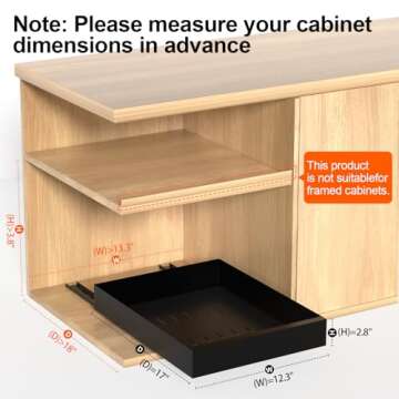 Show moreUpgrade your home organization with the HIKITMATE Kitchen Pull Out Cabinet Organizer. This innovative storage solution features dimensions of 12.3" W x 17.0" D x 2.8" H, making it the perfect addition to cabinets, pantries, and more. The installation process couldn’t be simpler—no tools or drilling required! Just peel off the double-sided nano adhesive strip, stick it onto your drawer slides and the cabinet, and in about five minutes, you’re ready to enjoy a clutter-free space. Crafted from durable thickened carbon steel with a multi-layer protection coating, this organizer resists rust, corrosion, and wear, ensuring long-lasting use while maintaining an attractive appearance.