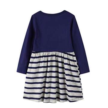 Show moreIntroducing the HILEELANG Girl Christmas Dress Long Sleeve Cotton Casual Dress, an absolutely enchanting piece perfect for your little ones this holiday season. Made from high-quality cotton jersey fabric, this dress offers unmatched soft and comfortable wear that is gentle on kids' sensitive skin. With its traditional crewneck and long sleeves, it's designed to keep young ones warm throughout the fall and spring. The fun and festive blue stripe design, combined with cute cartoon appliques, makes this dress a delightful choice for every special occasion or casual outing.