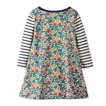 HILEELANG Toddler Girl Girl Floral Dress Stripe Long Sleeve Spring Winter Christmas Cotton Easter Dress with Pocket 4T