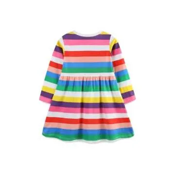 HILEELANG Toddler Girls Long Sleeve Dress Cotton Casual Fall Autumn Rainbow Stripe Jersey Shirt Dresses 4T