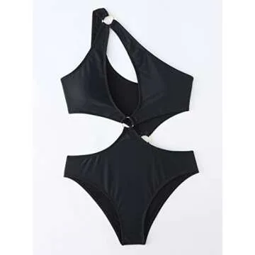 [FEATURES]: One piece cutout bathing suit for women, one shoulder swimwear, metal ring, removable padded cups