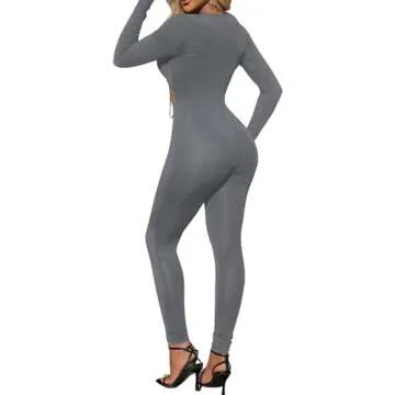 FEATURES: Long sleeve jumpsuit for women, solid color, tie up front, deep v neck, long-sleeved, full bodysuit