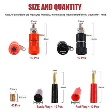 Show moreExperience unparalleled connectivity with the Hilitchi 40 Pcs Binding Posts Terminals, designed especially for enthusiasts, professionals, and beginners alike. This comprehensive set includes 20 banana plug sockets, crafted from durable zinc alloy and plastic, along with 20 gold-plated banana plugs (10 red and 10 black) that ensure a perfect match for your projects. Whether you’re setting up a breakout box or working on an Arduino project, this kit delivers exceptional performance and versatility.