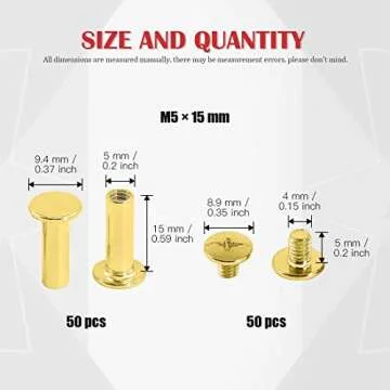 Hilitchi 50Sets M5 Brass Plated Phillips Chicago Screw Posts Binding Screws Assortment Kit for Scrapbook Photo Albums Binding, Leather Repair - Gold (M5 x 15mm-50Sets)