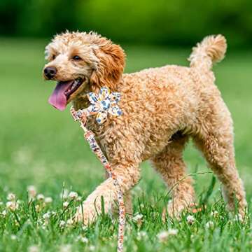 Hilkycton Dog Collar and Leash Set with Flower Bow Tie Girls Dog Collar Dog Tag Metal Buckle Adjustable for Small Medium Large Dogs, Orange Floarl-S