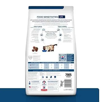 When compared to other brands, Hill's Prescription Diet z/d stands out due to its focus on hydrolyzed proteins and specialized fiber that are both backed by scientific research and veterinary recommendations. Many competing products may fail to adequately address food sensitivities or may contain ingredients that trigger allergic reactions, while Hill's formulation is carefully designed to be gentle on the stomach and effective in alleviating skin irritation.