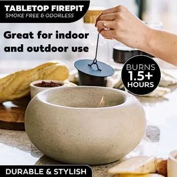 Hillside Home Store XL Portable Table Top Fire Pit - Durable, Concrete Indoor Fire Pit Tabletop, Smokeless Mini Fire Pit for Table, Fire Pit Bowl, Smores Maker - Black Pebble (Alabaster)