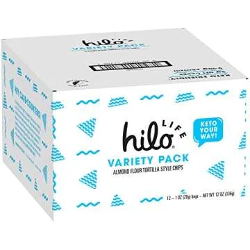 Show moreIntroducing the Hilo Life Low Carb Keto Friendly Tortilla Chip Snack Bags, a delightful fusion of taste and nutritional benefits designed for snack lovers who are watching their carbs without sacrificing flavor. Each 1-ounce pouch is meticulously crafted with almond flour, delivering a crunchy texture that’s perfect to enjoy standalone or as an accompaniment to your favorite dips. Our Variety Pack contains 12 individual bags, featuring 3 pouches each of Nacho Cheese, Ranch, Spicy Salsa, and Ultimate Taco — ensuring you have the perfect chip for every craving. Devour them guilt-free with a good source of protein, boasting a remarkable 9g of protein and only 3g of net carbs per serving, these tortilla-style chips are the ideal indulgence for those on a keto or low-carb lifestyle.