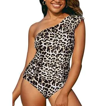 Hilor Women's Slimming One Piece Swimsuits Vintage One Shoulder Bathing Suits Asymmetric Modest Swimwear Yellow Leopard 16