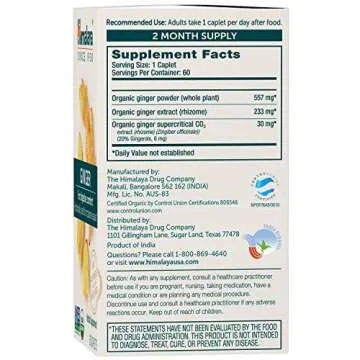 Himalaya Organic Ginger Supplement - 60 Caplets for Nausea Relief