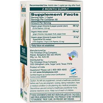 Himalaya Organic Trikatu, Herbal Supplement for Occasional Heartburn, Digestive Support, Gas, Bloating, Overeating, Ginger, Black Pepper, Non-GMO, USDA Organic, Vegan, 60 Plant-Based Caplets