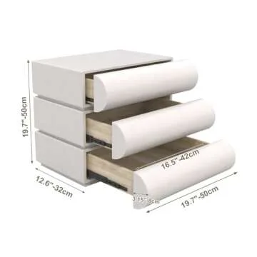 HIMAmonkey Nightstand with 3 Drawer, Bedside Table with Microfibre Leather, Fashion Night Stand for Bedroom, No Assembly Required-White