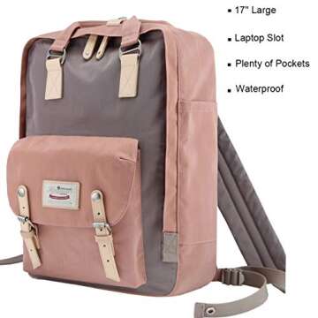 Himawari Laptop Backpack for College Large 17 inch Computer Notebook Bag Travel Business Backpack for Men Women, Light Pink