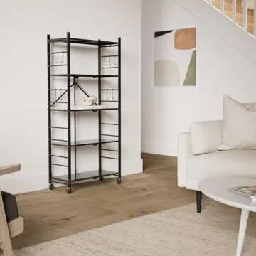Himix Storage Shelves with 20 Hooks, 5-Tier Collapsible Organization Storage Rack Bookshelf Folding Pantry Shelves Cube Shelf Wire Shelving Holds 440 Ibs for Garage Kitchen Room