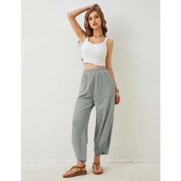 Himosyber Women Cotton Pants Wide Leg Pants Casual Loose Drawstring Low Waist Beach Palazzo Harem Pants (Lightgrey-S)