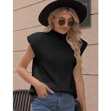 Himosyber Women's Solid Sleeveless Vest Elegant High Neck Stretchable Cap Sleeve Knit Sweater Tops (Black-S)