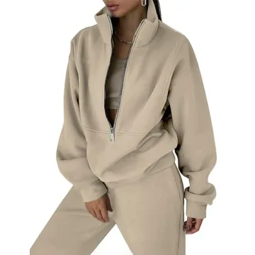 Show moreIntroducing the **Himosyber Women Sweatsuits Half Zip Fleece Sweatshirt and Pant 2 Piece Joggers Set Tracksuit** in stunning khaki, designed to elevate your comfort while keeping you stylish! Crafted with a blend of polyester and cotton, this set offers a thick and cozy feel that is perfect for brisk fall and winter days. The half zip pullover boasts a high neck that seals in warmth, complemented by long sleeves and expertly ribbed cuffs that give you a flattering fit. Whether you're running errands or lounging at home, this super soft relaxed fit sweatsuit will become your go-to ensemble.
