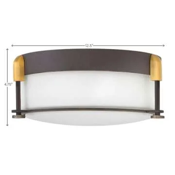 Show moreIlluminate your living space with the Hinkley Colbin 3231OZ Small Flush Mount Ceiling Light, a true masterpiece designed to blend style and functionality seamlessly. This stunning light fixture features a stylish transitional silhouette, showcasing a beautifully etched opal glass shade that casts a warm, inviting glow across any room. Enhanced by decorative bracket and knob details, all finished in a deep, cool Oil Rubbed Bronze, this ceiling light is both chic and practical, making it an excellent choice for modern and traditional decor alike. With a compact structure of just 12.5 inches in diameter and a height of 4.75 inches, it is ideally suited for rooms with shorter ceilings and smaller square footage, ensuring that no space is left in the dark.