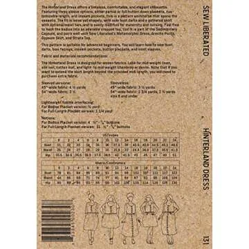 Show moreIntroducing the Hinterland Dress Sewing Pattern by Sew Liberated, your new go-to for creating effortlessly chic and feminine garments. This versatile pattern allows you to unleash your creativity while constructing a comfortable, flattering dress that embodies both style and practicality. Designed for sewists of varying skill levels, this pattern features a combination of elegant options including a drawstring waist, pockets, and a choice of sleeve lengths, making it adaptable to any occasion. Experience the joy of sewing with high-quality instructions and stunning style potential in every stitch.