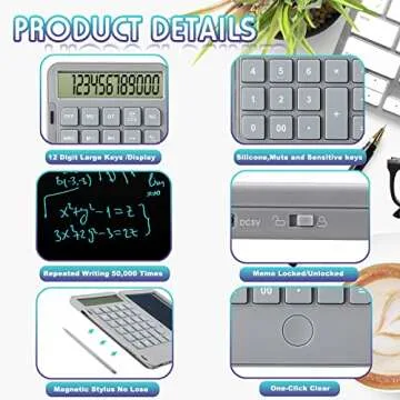 Hion Calculators,12-Digit Large Display Rechargeable Pocket Office Desktop Calculator with Erasable Wiriting Tablet,Mute Basic Desk Calculators with Doodle Pad for Student Home School,Grey