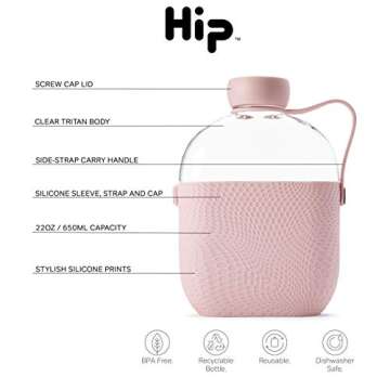 Hip 22-oz Flat Water Bottle Flask with Textured Silicone Sleeve and Carrying Handle - Tritan BPA-Free Plastic (Blush)