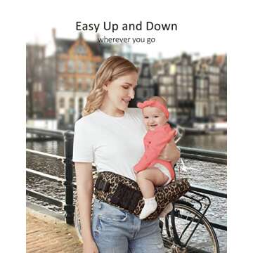 Show more The BABYMUST Hip Baby Carrier is your ideal solution for carrying your little one comfortably and stylishly, designed for parents who are always on the go. This carrier is perfect for infants as light as 8 lbs and can accommodate toddlers up to 66 lbs. Its chic leopard print adds a fashionable touch, while its ergonomic design ensures that your baby's hips are supported. The adjustable long waistbands provide a customizable fit, making it suitable for both moms and dads. With various pockets for storage, you'll find it easy to keep essentials at hand, whether you're running errands or enjoying a day out.