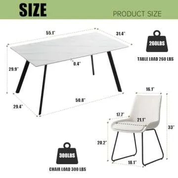 HIPIHOM Modern Dining Table Set for 6, Rectangular White Dining Sintered Stone Table and Chairs Set 6 for Home, Kitchen, Living Room, Dining Room (Table+6 Off-White Chairs)