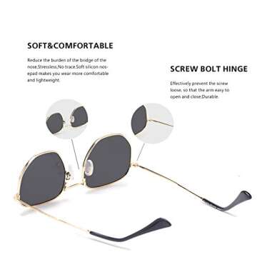 Hipster Hexagonal Polarized Sunglasses Men Women Geometric Square Small Vintage Metal Frame Retro Shade Glasses (Gold Black)