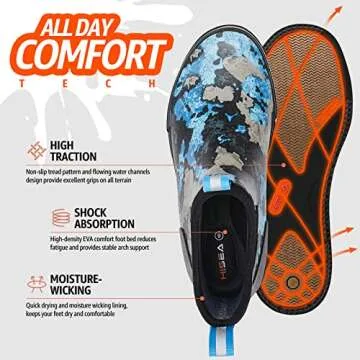 HISEA Men's Waterproof Ankle Deck Boots for Fishing - Blue Camo