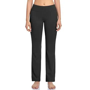 Show moreIntroducing the HISKYWIN Inner Pocket Yoga Pants – the ultimate choice for those who seek both style and functionality in their workout gear. Crafted from a premium blend of 87% Polyester and 13% Spandex, these pants provide superior moisture-wicking properties, ensuring you stay dry and comfortable during even the most intense workouts. The heather dark grey option is uniquely made with 50% Cotton, offering a soft touch against the skin. Designed for athletes and fitness enthusiasts alike, these long bootleg flare pants allow for maximum freedom of movement while still maintaining a chic, flattering look.