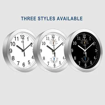HITO 10 Inch Silent Wall Clock Battery Operated Non Ticking Glass Cover Silver Aluminum Frame, for Kitchen, Bedroom, Home Office, Living Room Decor (Black)