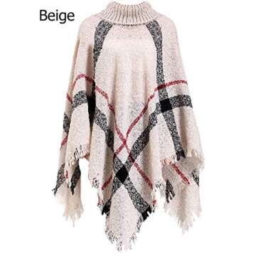 HITOP Women’s Dress Ponchos, Stylish Boho Turtleneck Knit
