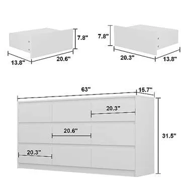 Hitow 9 White Drawer Dressers, Modern Large Dresser for Bedroom Organize, Wooden Long Dresser with 9 Handle Free Drawers, Storage Chest of Drawers for Living Room Office, Ball Bearing Slide (63" W)