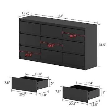 Show more If you're in search of the ideal dresser that marries both style and functionality, look no further than this stunning 9 Drawer Dresser from Hitow. Crafted with high-quality manufactured wood, this dresser is designed to stand the test of time. The exquisite sealing process imparts a remarkable resistance against water and scratches, ensuring a long-lasting addition to your home decor.