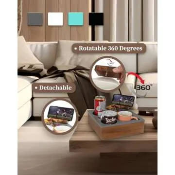 Hitseon Couch Cup Holder Tray, Handy Soft Silicone Acacia Wooden Couch Caddy for Bed Car Seat Beach Organizer, Waterproof Anti-spill Couch Drink Holder for Snacks Beverage Remote (Gray)