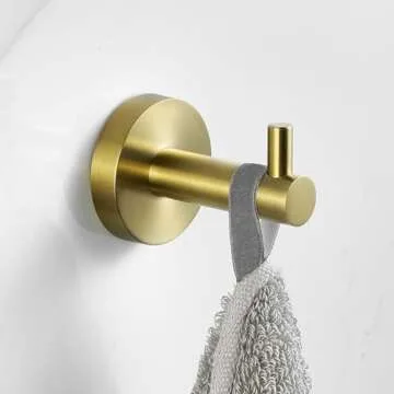 HITSLAM Gold Towel Hooks for Bathroom Wall Mounted, Brushed Brass Wall Mount Hooks Heavy Duty Premium SUS 304 Stainless Steel Rustproof 2 Pack