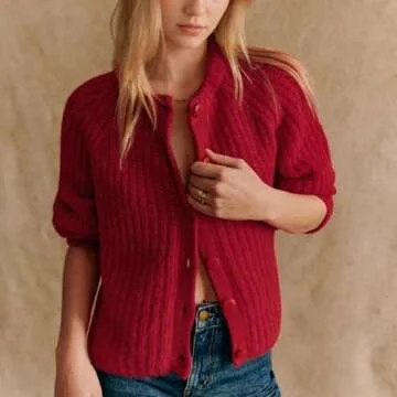 Hixiaohe Cardigan Sweater for Women Long Sleeve Button Y2K Chunky Knit Sweater Fall Casual Open Front Outwear Knitwear Coat(Dark-Red,XS)