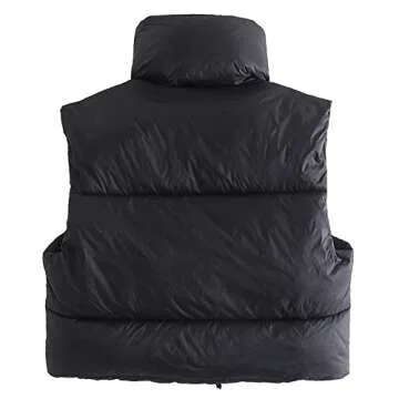 Hixiaohe Women's Winter Crop Vest Puffer Lightweight Stand Collar Padded Vest Zip Up Sleeveless Jacket(Black,L)