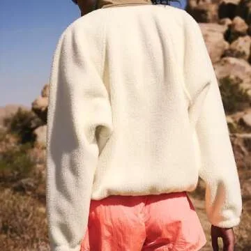 Hixiaohe Women Sweatshirt Sherpa Casual Lapel Cropped Pullover Long Sleeve Button Down Fuzzy Fleece Jacket with Pocket(Apricot,M)