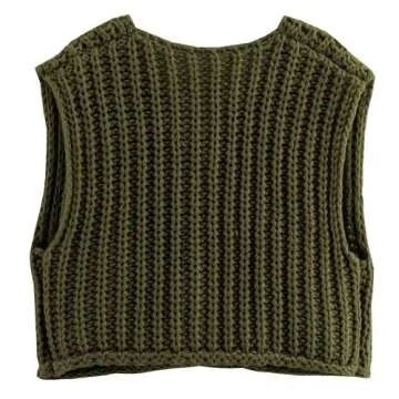 Hixiaohe Womens Crochet Chunky Knit Top Sleeveless Button Down Crop Tops Trendy Cardigan Sweater Vest for Women with Pockets(Army-Green,L)