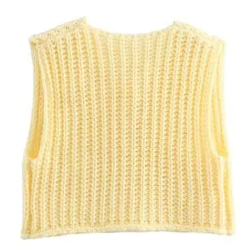 Hixiaohe Womens Crochet Chunky Knit Top Sleeveless Button Down Crop Tops Trendy Cardigan Sweater Vest for Women with Pockets(Yellow,XS)