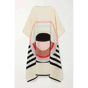 Hiyan Creation Printed Lounge Wear Calf Length Silk Crepe Kaftan, Tunic Dress, Summer Loose Dress, Soft Dress Gift for Her, Caftan, Party Wear Kaftan 5598 White