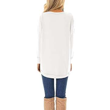 HIYIYEZI Fall Tops for Women Long Sleeve Side Split Casual Loose Tunic Top (Large,White)