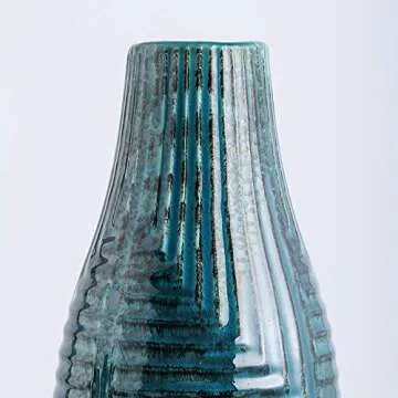 hjn Ceramic Vase- Teal Vase for Home Decor, Flower Vase for Centerpieces, Modern Decor Vases for Living Room/Bookshelf/Mantel/Home Decor Accents - Teal texture-Medium-13.8" H