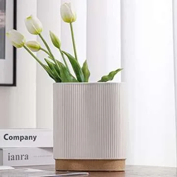 hjn White Ceramic Vase for Home Decor Flower Vase for Centerpiece White Vase for Living Room/Table/Countertop/Home Decor/Kitchen/Office-Height 8"