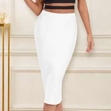 Show moreStep into the spotlight with our stunning bandage skirt, designed to turn heads and keep you comfortable at any event. This exquisite piece, crafted by HLBandage, features a refreshing and breathable bandage fabric that feels cool against the skin, perfect for those sultry summer nights. The midi length and elegant back split create a flattering silhouette that accentuates your curves beautifully. With a back zipper closure, this skirt ensures a secure fit while making dressing a breeze.