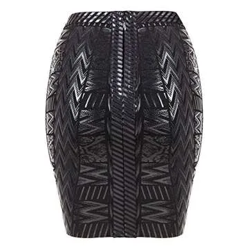 HLBandage Leather Metallic High Waist Bandage Skirt (XXL, Black)