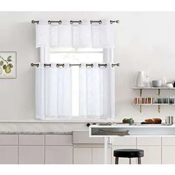 HLC.ME Abbey Faux Linen Textured Semi Sheer Privacy Light Filtering Transparent Thick Half Short Grommet Curtain Valance Topper for Small Windows, Kitchen & Bathroom (54 W x 18 L, White)