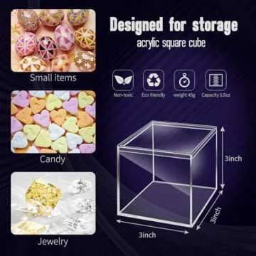 Hldgras Acrylic Containers Clear Box with Lids for Display Acrylic Gift Box & Clear Multi Purpose Organizer Candy Storage for Cosmetics, Makeup, Jewelry, Party Favor (18, 3x3x3 Inch)